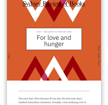 Read the whole article at: https://sydneyreviewofbooks.com/essay/for-love-and-hunger/