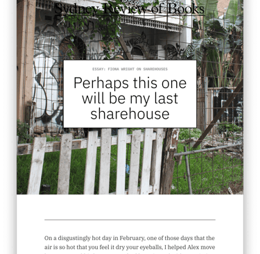 Read the whole article at: https://sydneyreviewofbooks.com/essay/perhaps-this-one-will-be-my-last-sharehouse/