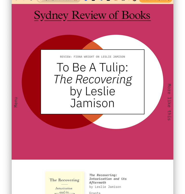 Read the whole article at: https://sydneyreviewofbooks.com/review/the-recovering-leslie-jamison-review/